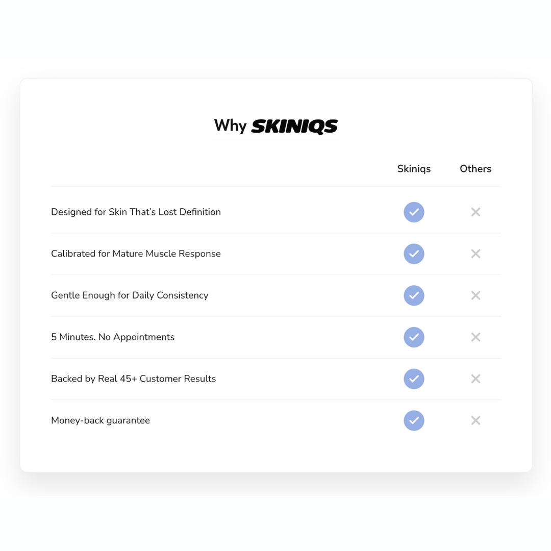 Non-Invasive & GentleCalibrated stimulation for mature skin 45+, without needles, downtime, or aggressive treatments.
